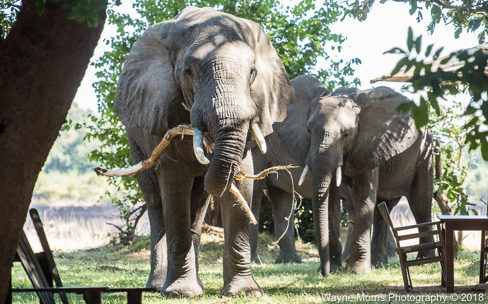 Big destructive elephants in our outside dining area