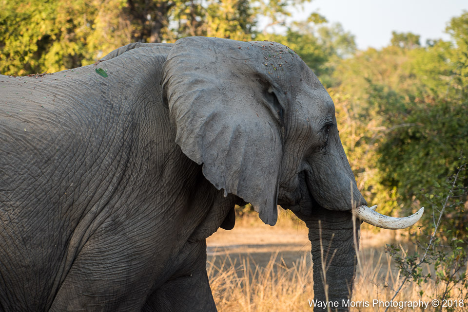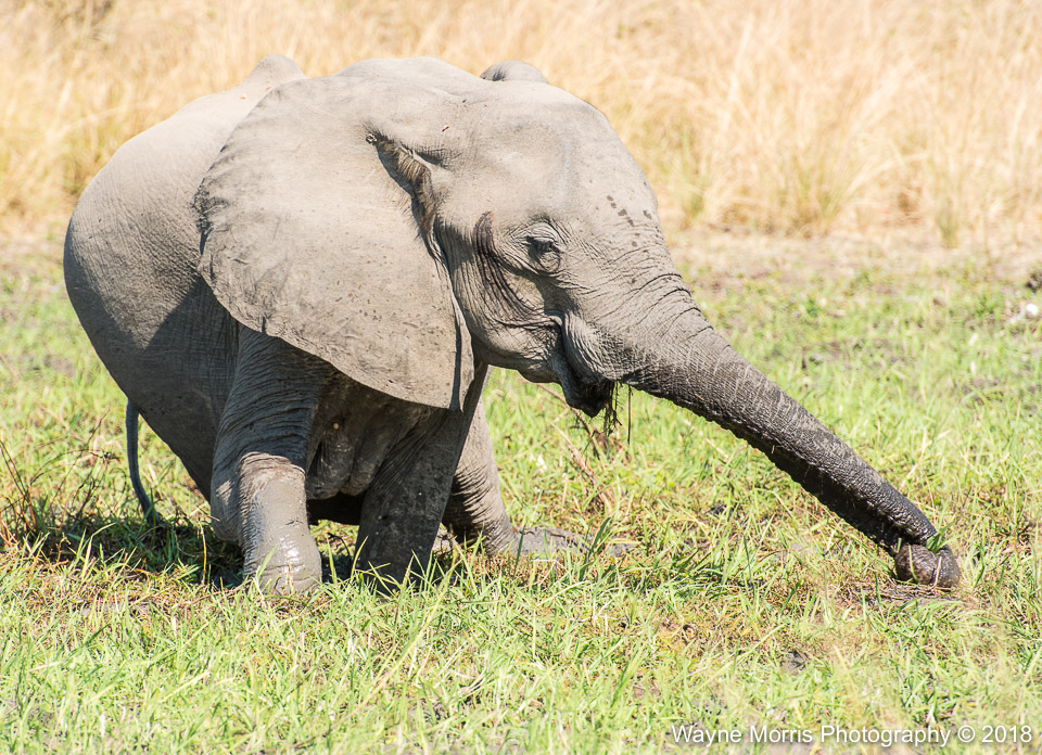 Young Elephant enjoying a dirt bath after crossing the Luangwa River