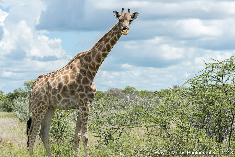Male giraffe checking us out