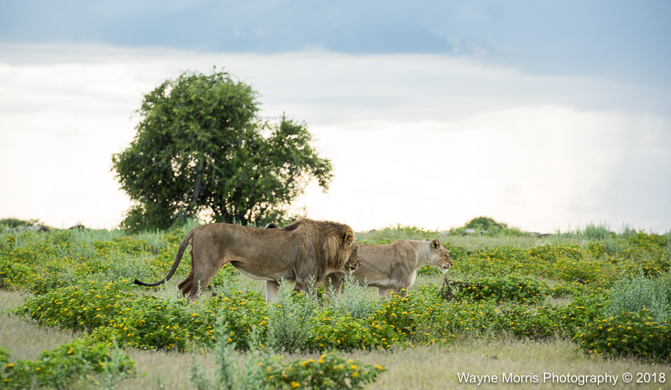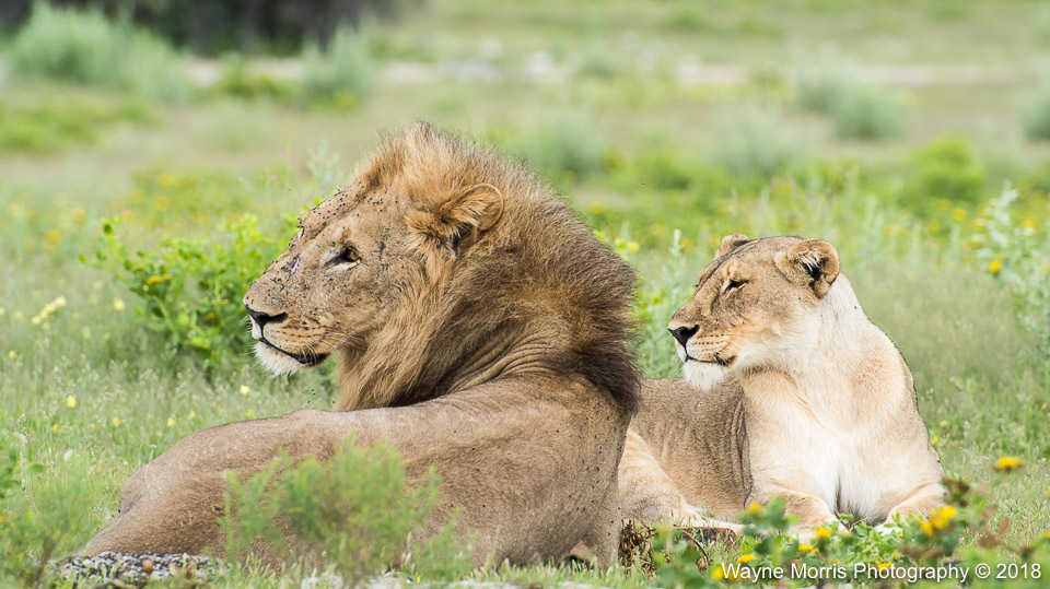 Resting lion lovebirds in Etosha