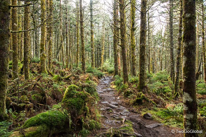 The final half mile to the summit was in think forest