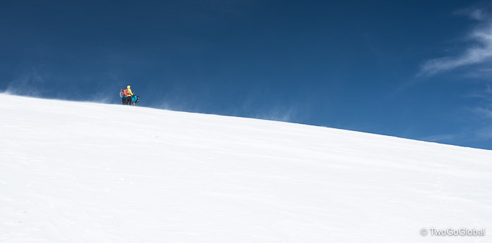 Skiers heading down Elbert